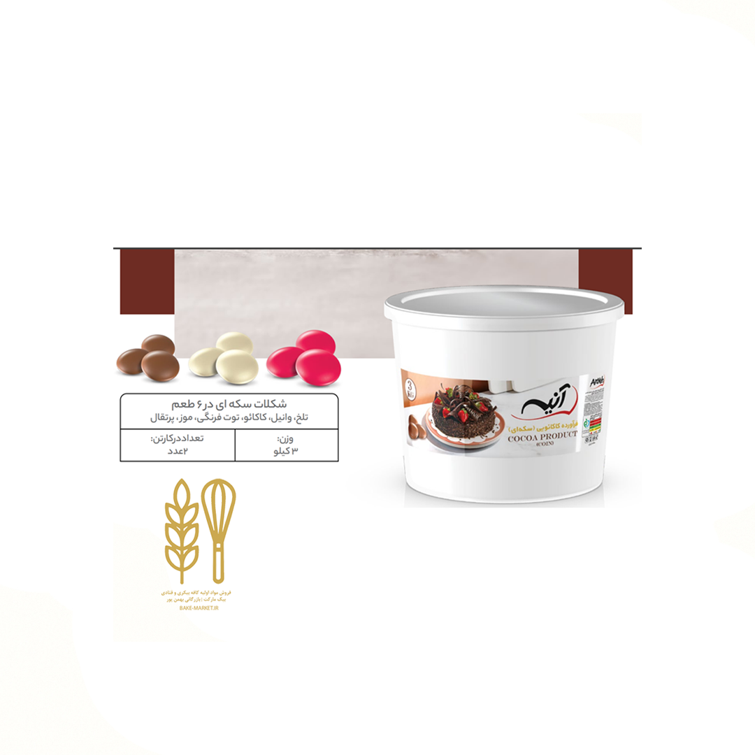 شکلات سکه ای آنیه در انواع طعم ( تلخ، وانیل، کاکائو، توت فرنگی، موز ، پرتقال ) سطل 3 کیلویی